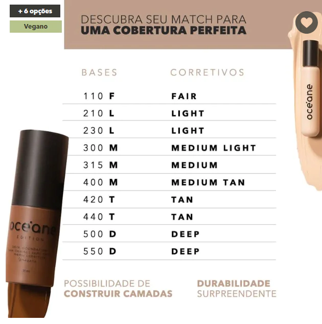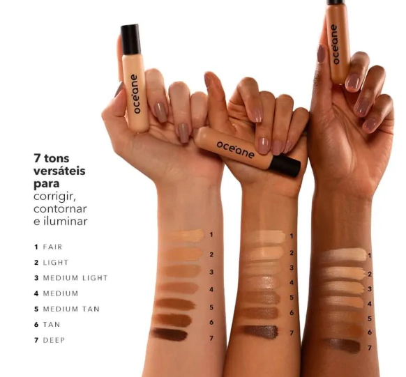 E tem mais: esse corretivo líquido possui longa durabilidade na pele, permitindo que a sua maquiagem se fixe por mais tempo com uma pigmentação incrível. Agora, vamos ao que interessa: as tonalidades! São 7 cores diferentes que se adequam a diversos tons de pele. Assim, fica mais fácil encontrar a mais indicada para o seu rosto