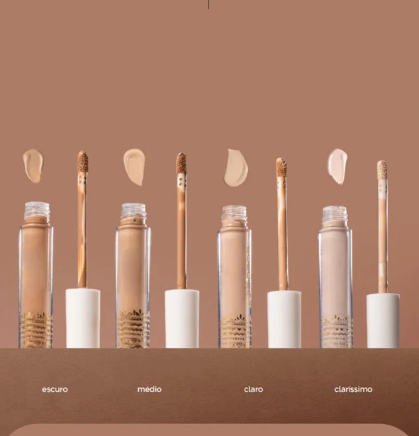 O Corretivo Líquido Anairana possui em sua composição extrato de rosa mosqueta, adstringente e colágeno melhorando a textura da pele ao ser aplicado.4g