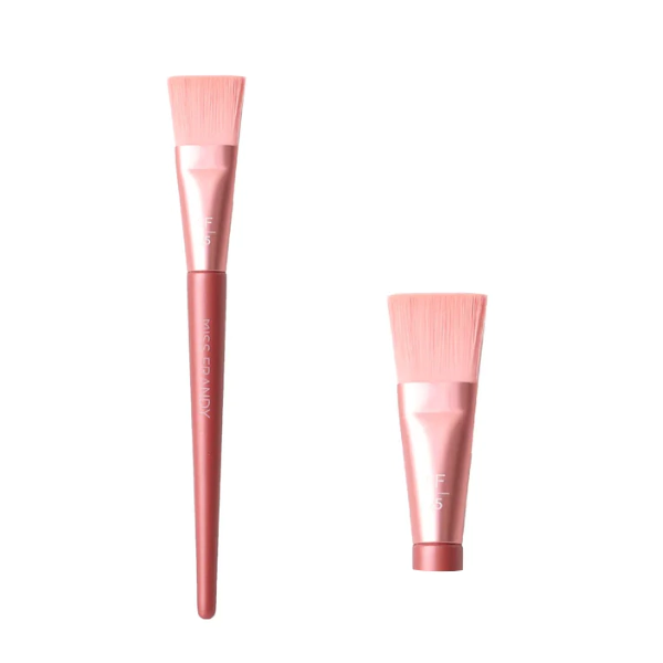 Seu formato achatado e cerdas macias garantem uma aplicação uniforme, alcançando todos os contornos do rosto com precisão.